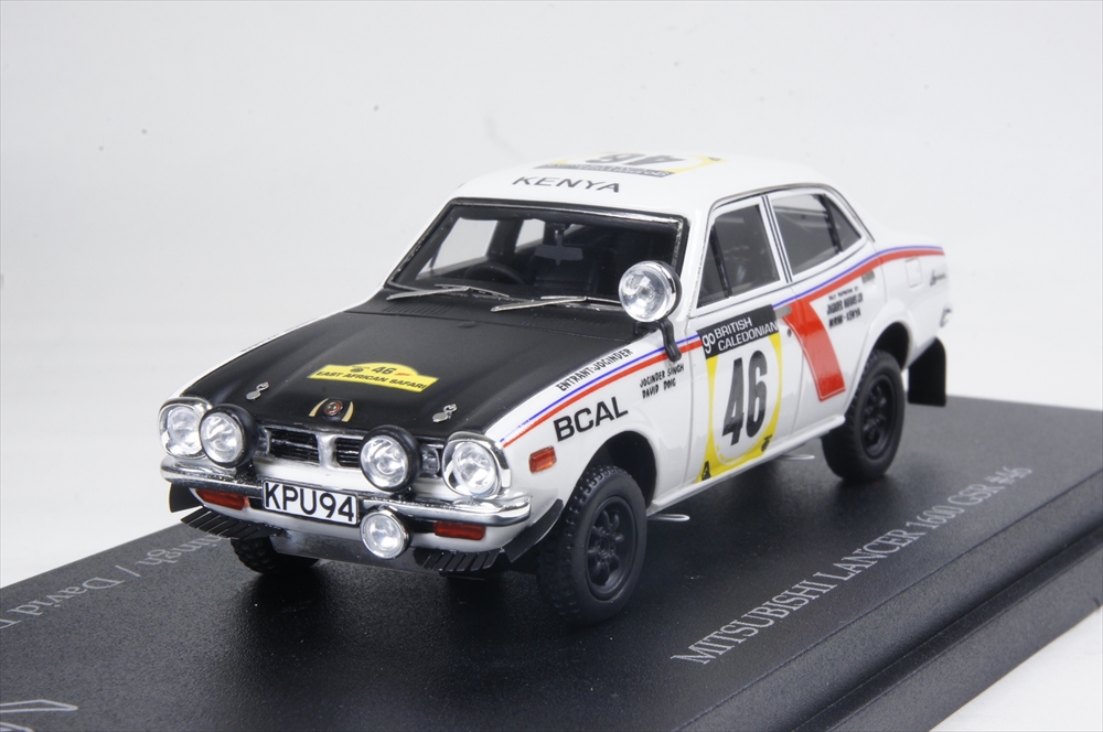 1/43 Mitsubishi Lancer 1600 GSR # 46 Safari Rally Winner 1974 J. Shin / D. Dog